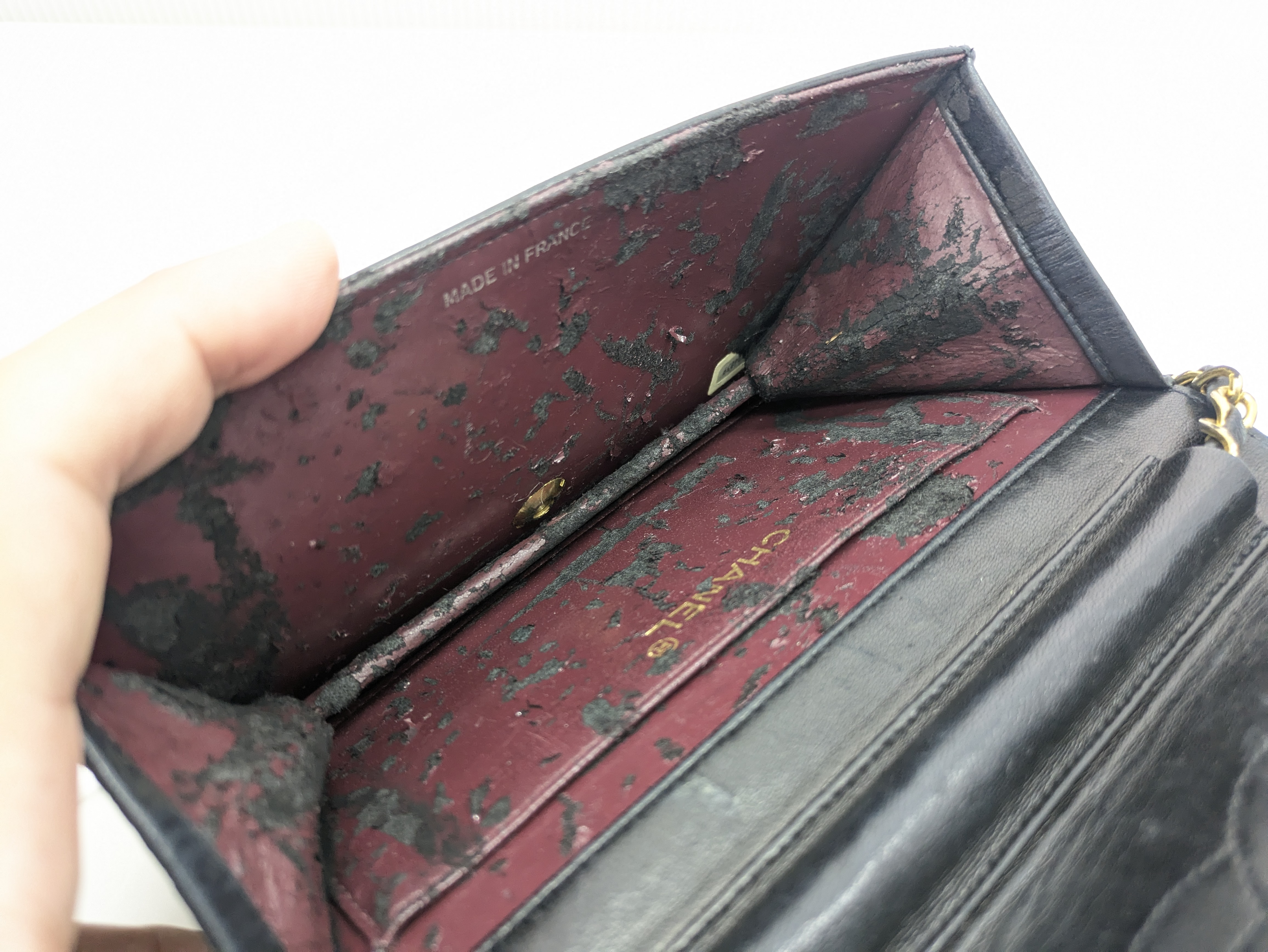 バッグ内部がべた付いてお困りの方、生地を交換する事でまた気持ちよく使っていただけるように蘇らすことができます!