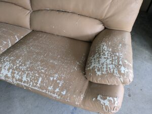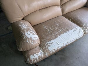 画像のようにソファーの生地表面は劣化し酷く剥がれてきている状態です。