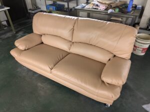 染め直し(再着色): ソファーの製造元から取り寄せるかのような、元の色を忠実に再現した塗料(顔料・染料)を調色します。色褪せた箇所はもちろん、ソファー全体を均一に再着色し、まるで新品のような発色を取り戻します。