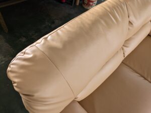 今回は合皮ソファーで全体的に生地が剥がれたので張り替えとほしいとご相談いただきました。