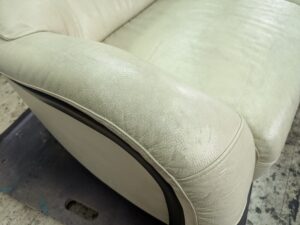 この部分は人が座りその重みを受け止め、さらに擦れなども起こる所で傷や小傷が付きやすい部分になります。その為ほとんどの負荷はこの部分に集中してしまうので当然傷んで劣化してくるのもこの座面と肘掛けからとなります。