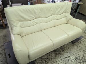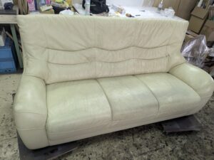 本革3人掛けソファー ≀ 擦れ傷、ひび割れ補修、染め直し修理