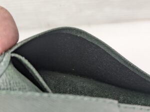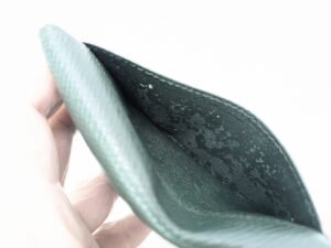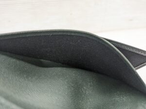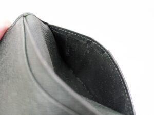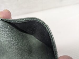 こちらのカードケースも内側の生地が剥がれてきていますね。そして手で触ると少しべた付きもあります…