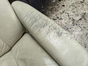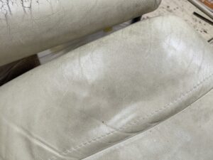 このような状態になってくると革の強度も下がってきて最終的には破れに繋がります。革が破れてしまうと費用も高額になってきますのでご注意くださいね。