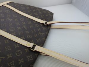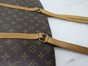 そして、劣化したヌメ革部分とは対照的にモノグラムの生地部分は目立つ傷や劣化、色剥げなどなくキレイな状態なのが分かりますね。