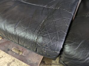 今回お預かりしたソファーは本革製の物で20年以上使っておられるソファーで座面が破れてしまったのでご相談いただきました。