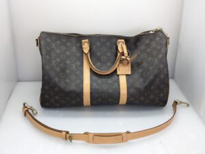 このように、モノグラムの生地自体は非常に丈夫で普通に使っている分にはほぼ一生物なので、今後革が劣化して千切れてしまう事があってもまたその時は今回のように修理する事でまた使えるようになります。