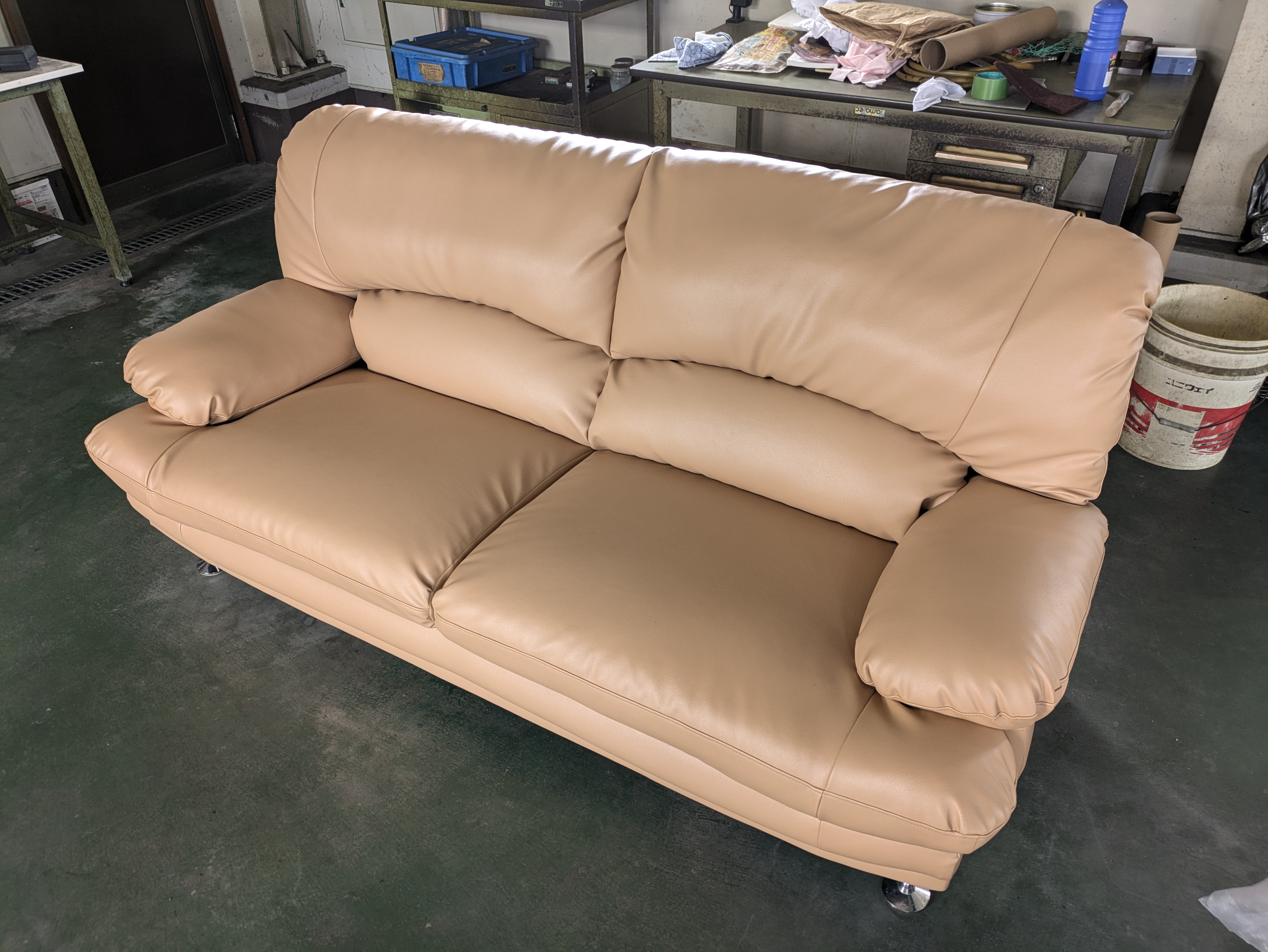 座面のみ張り替えで本体側はリペアのみn修理です。部分的張り替え+リペアのハイブリッド修理で費用も抑えた修理が可能です!